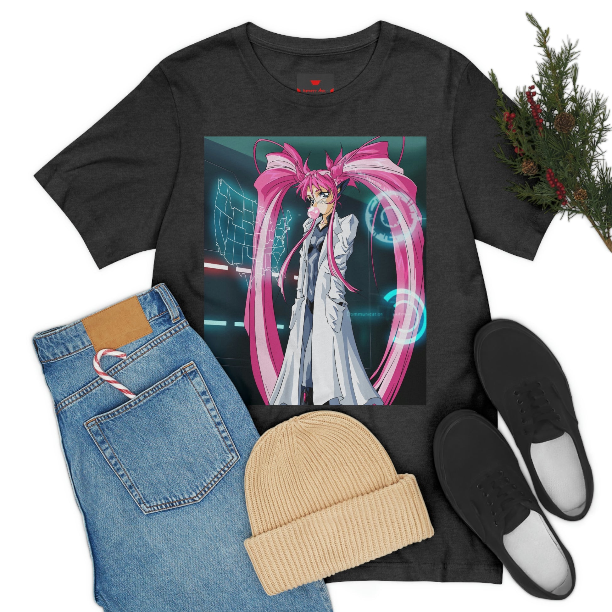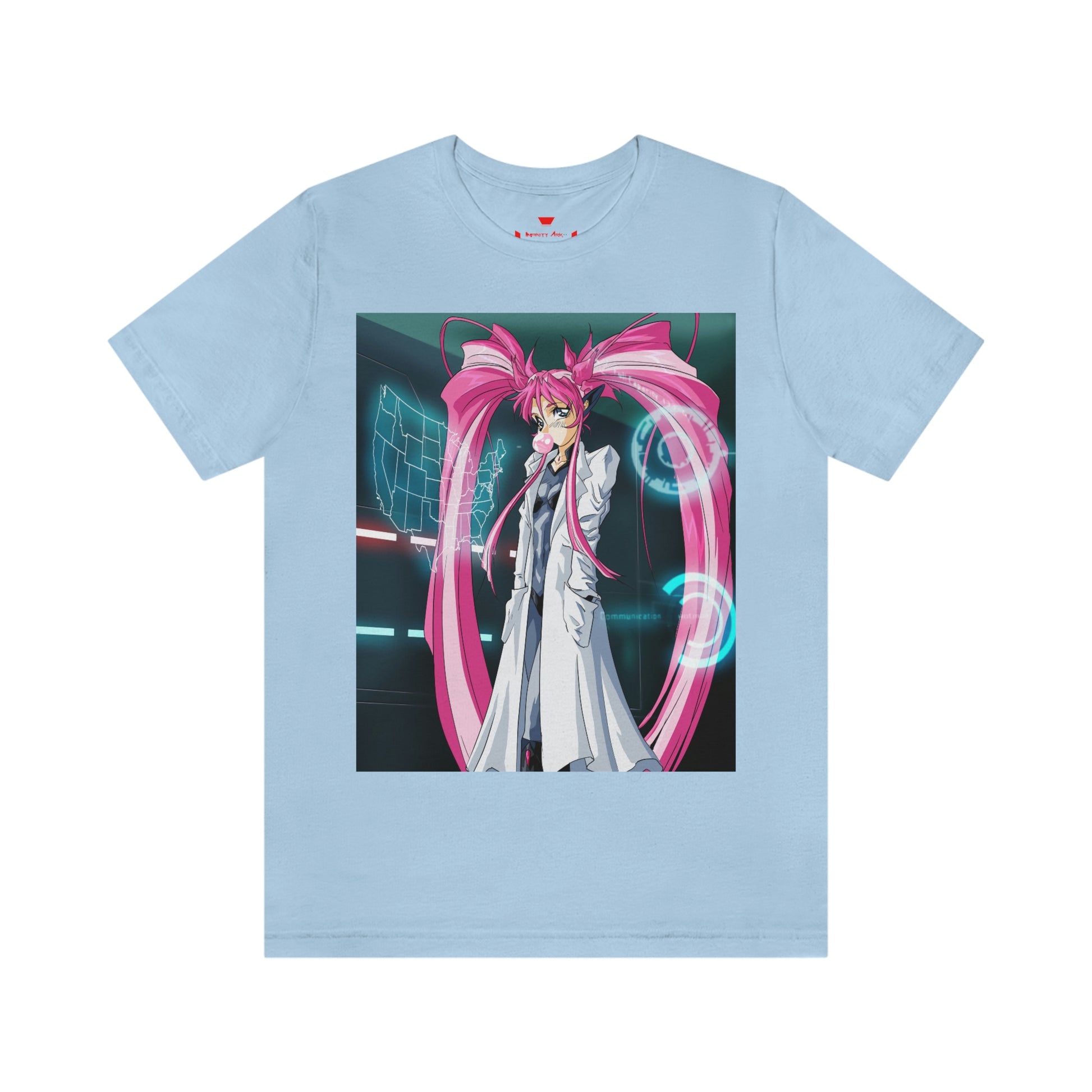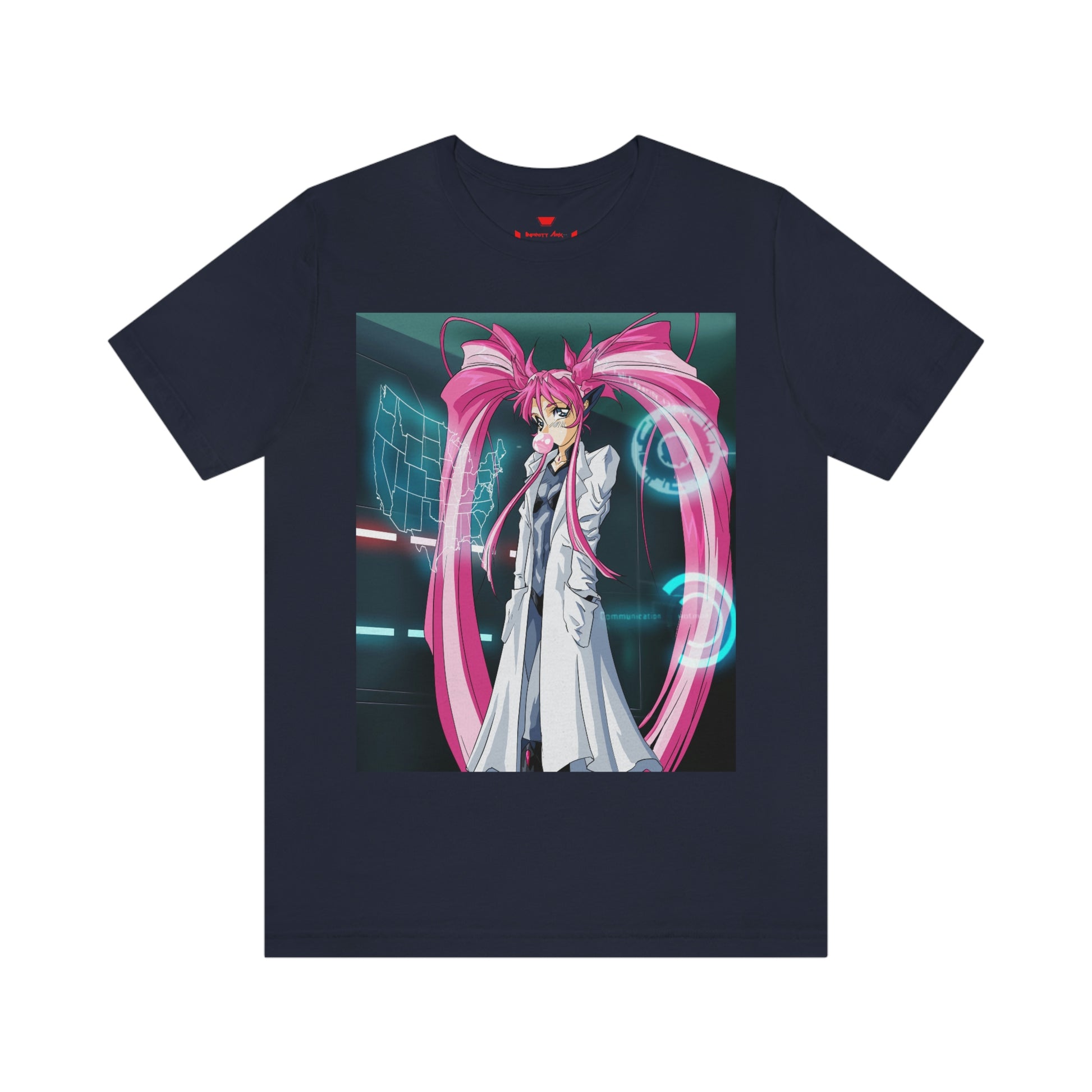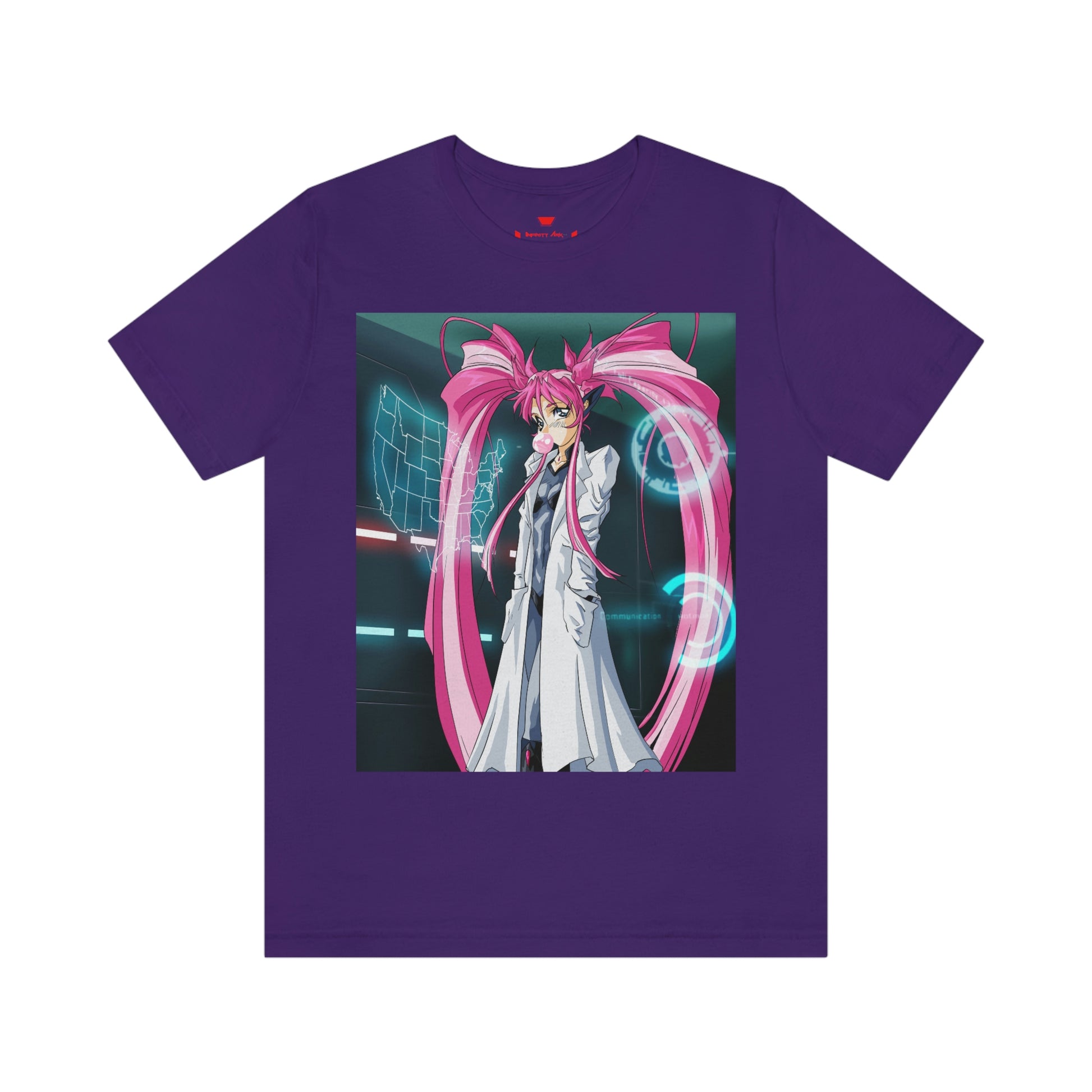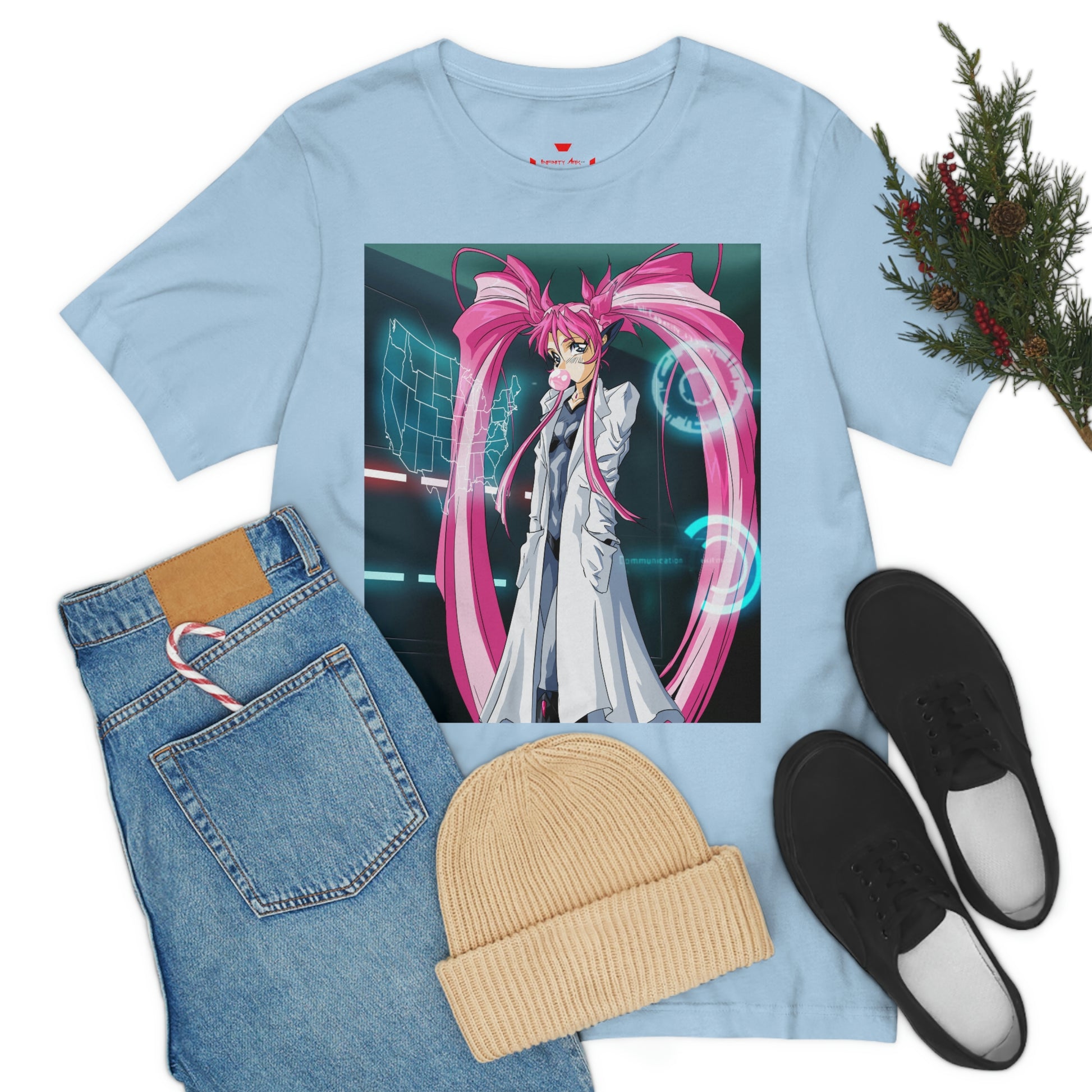 Yuimei chewing bubblegum while definitely not plotting world domination perish the thought! Show your love and affection for our cute pink bombshell (litterally) in this jersey short sleeve tee! Proceeds go to funding our Constancy Roa OVA project thank you!